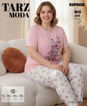 Bayan Kısa Kol Pijama Takımı Battal Pembe 1634-Tarz Moda