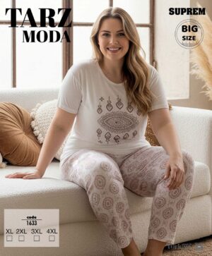 Bayan Kısa Kol Pijama Takımı Battal Beyaz 1635-Tarz Moda