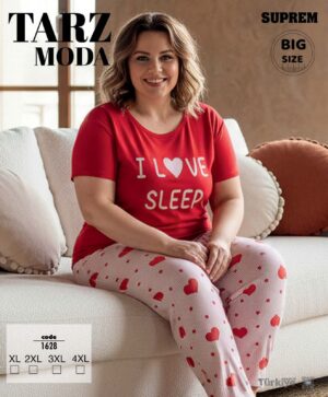Bayan Kısa Kol Pijama Takımı Battal Kırmızı 1628-Tarz Moda