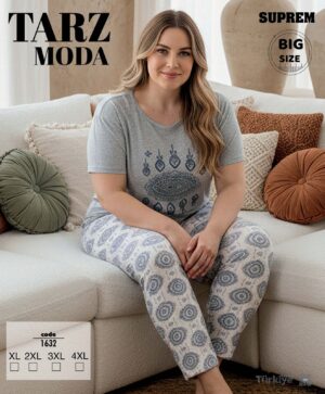 Bayan Kısa Kol Pijama Takımı Battal Gri 1632-Tarz Moda