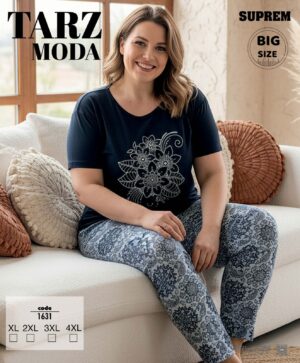 Bayan Kısa Kol Pijama Takımı Battal Mavi 1627-Tarz Moda