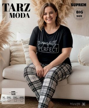Bayan Kısa Kol Pijama Takımı Battal Siyah 1630-Tarz Moda